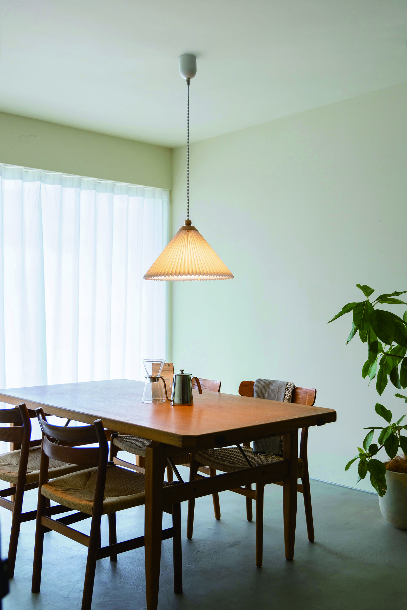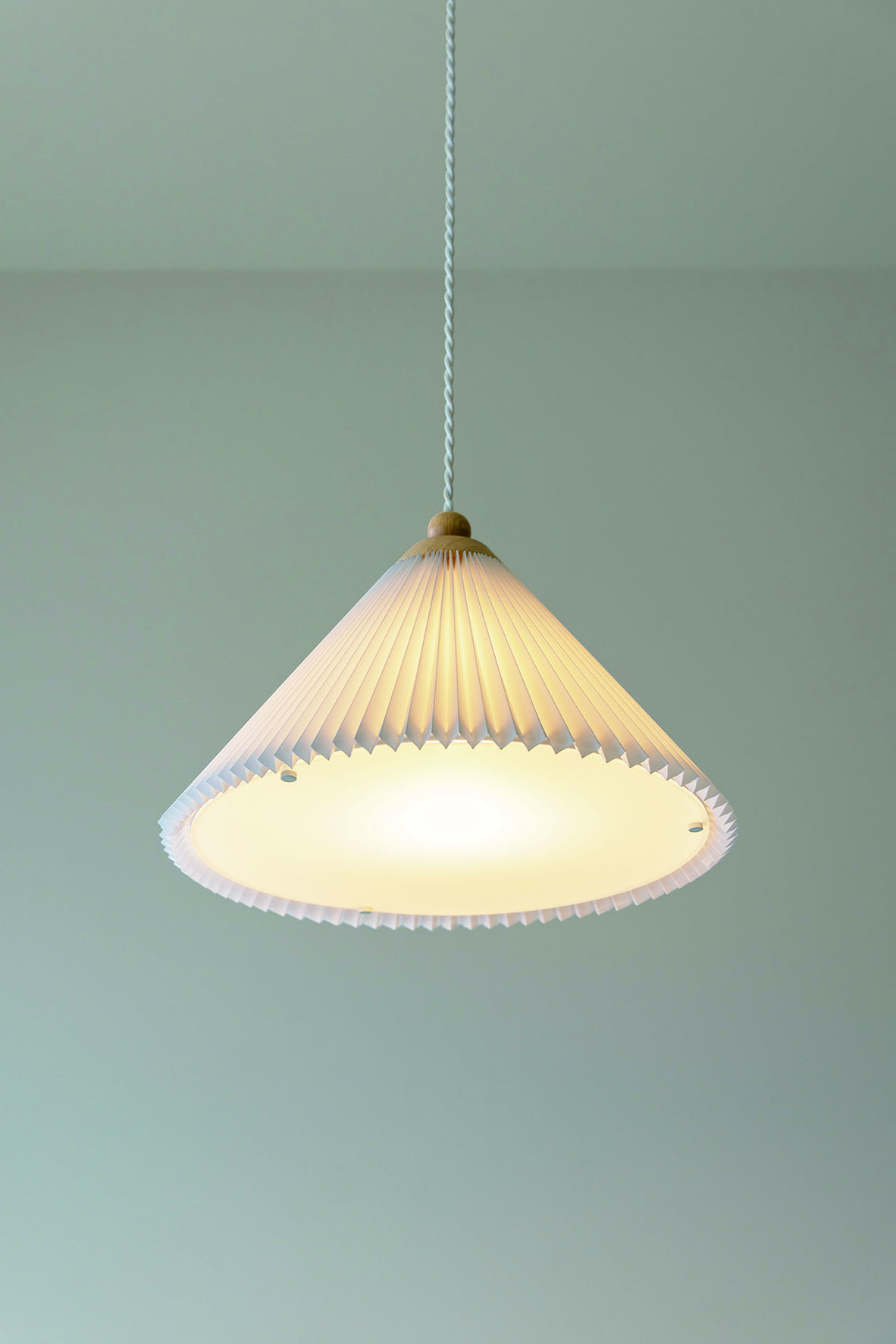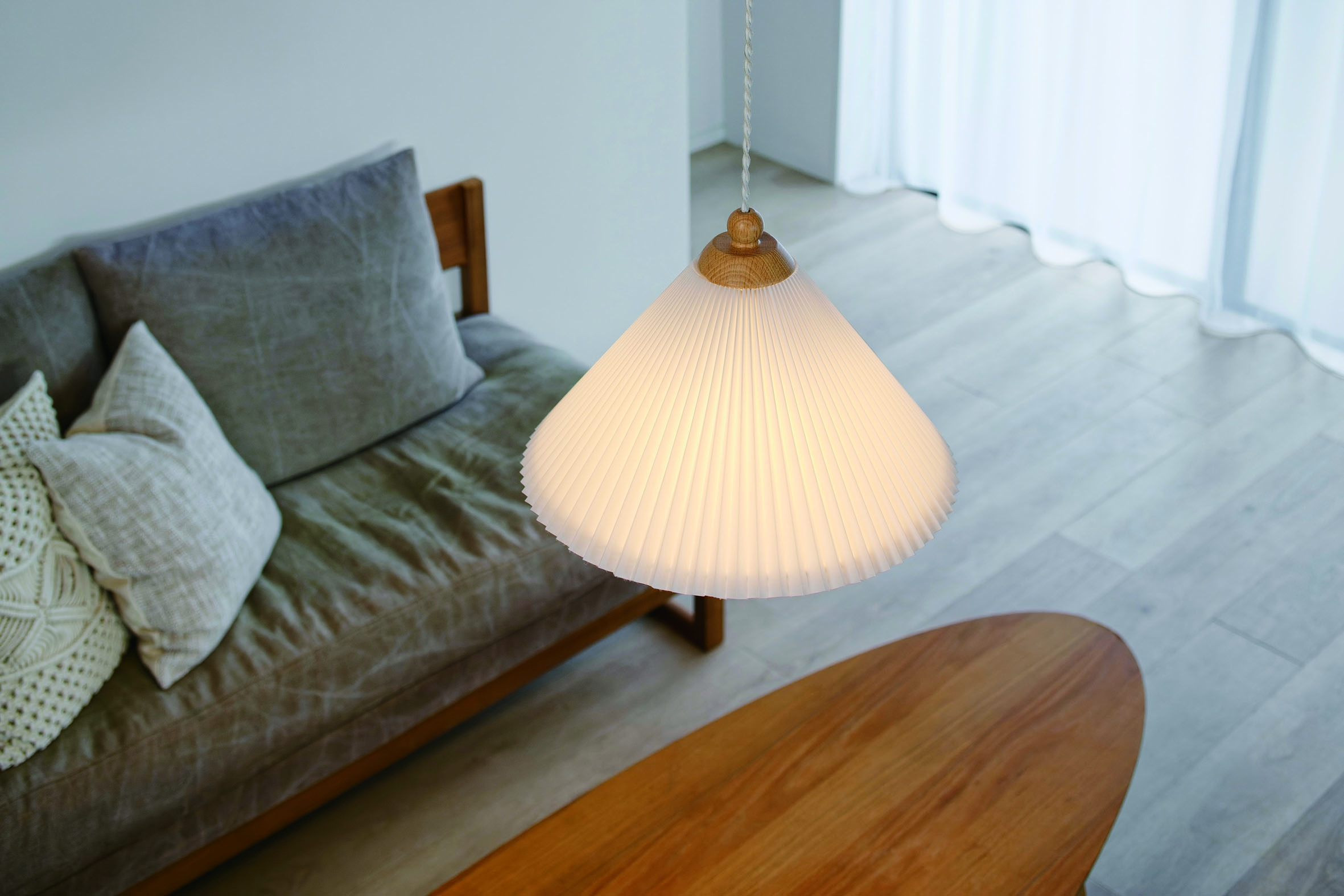 プリーツによる繊細な陰影と丸みを帯びたウッドパーツの愛らしさで、