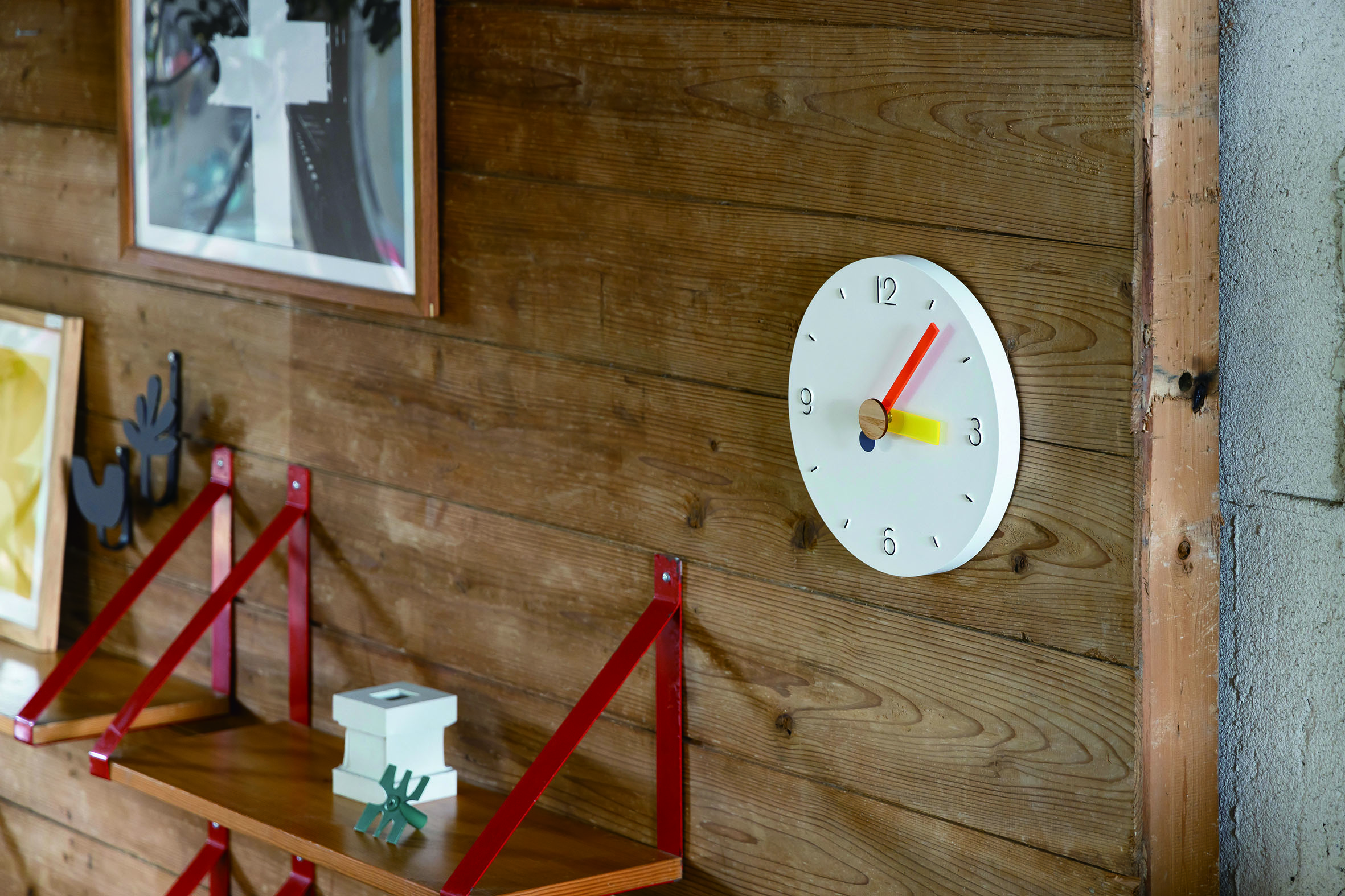 Korpi コルピ ウォールクロック ホーム商品雑貨Korpi コルピ ウォールクロック Korpi コルピ ウォールクロック Korpi コルピ ウォールクロック 透け感のあるアクセントカラーで 大人も惹かれるポップさを表現しました。 ジオメトリックな数字や短く丸い秒針、 そしてリベットにはウッドを添えて、楽しさが弾むようなルックスに。 白い文字盤に落ちる赤や黄色の影にも遊び心が光ります。 品番 CL-4563 素材 ポリレジン サイズ φ27×D2.5cm 質量:0.7kg 仕様 スイープムーブメント 壁掛け用木ネジ付 単3乾電池をご使用ください(乾電池は付属しません) ¥15,180(税込) 数量