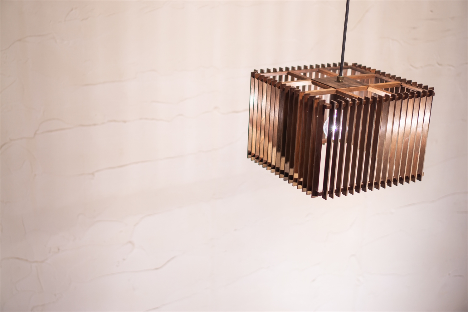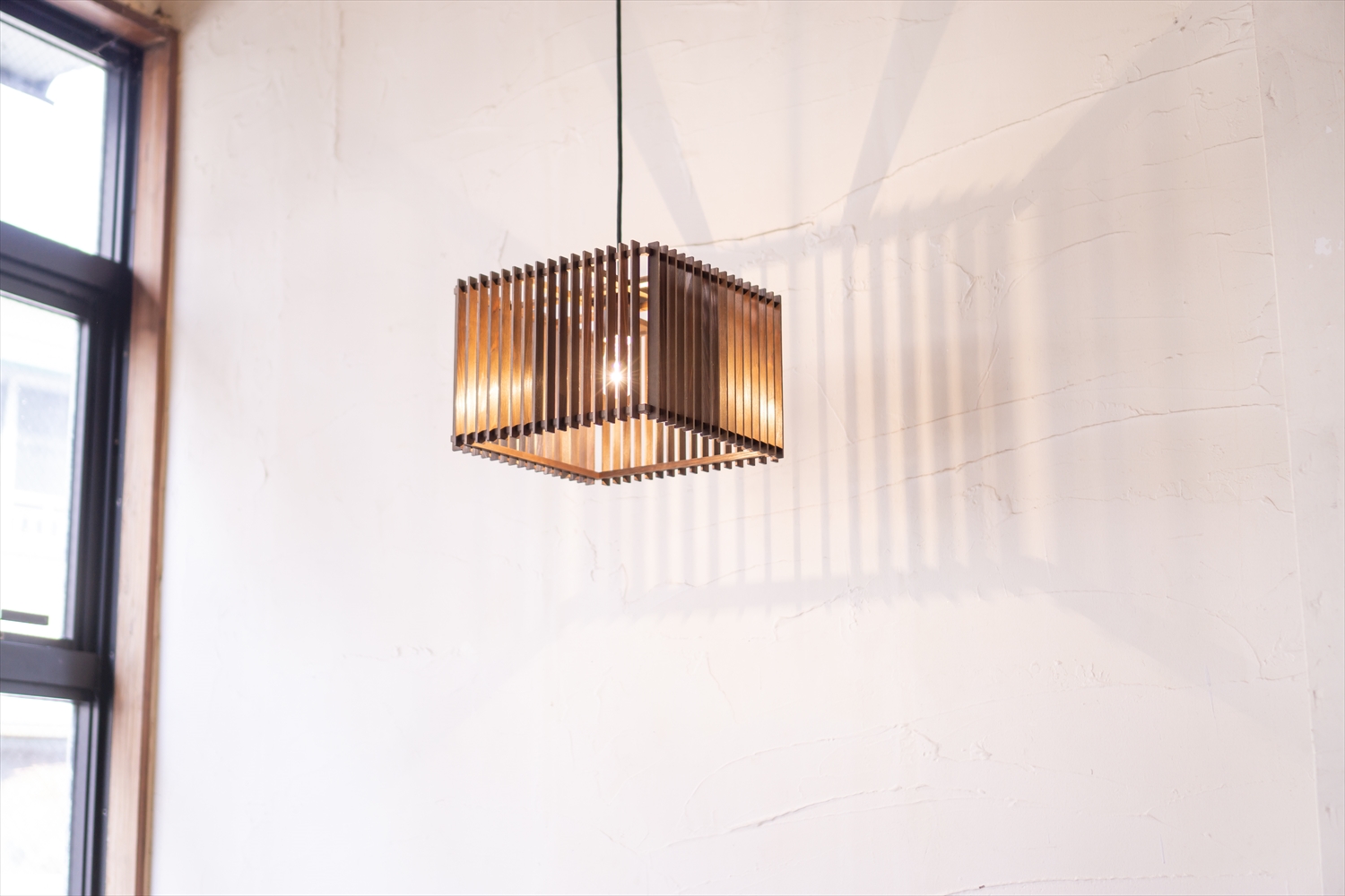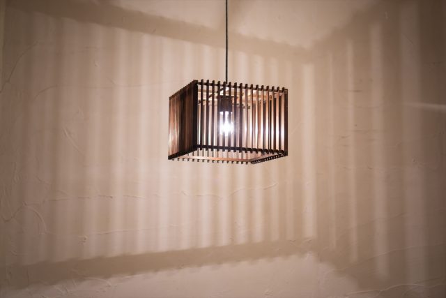 面白さのあるペンダント。光が灯ると木目が鮮やかに照らし出されます。