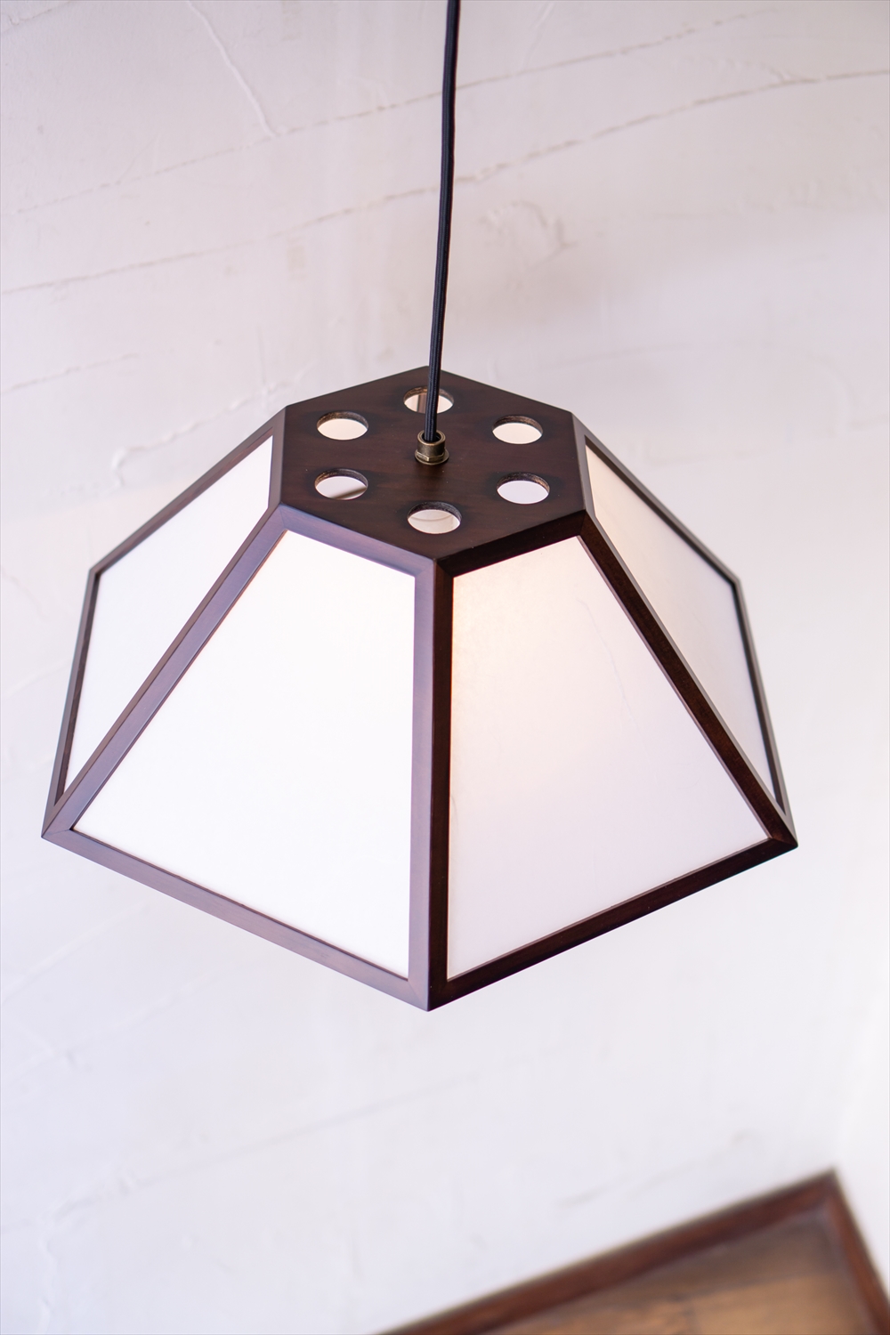 丹(tan-S) ホーム商品照明ペンダント照明丹(tan-S) 丹(tan-S) 和風ペンダントの王道デザイン。艶のあるブラウン塗装で 品格のある落ち着いた雰囲気に。 備考:シェードは自然の材を使って手作りされたものです。 その為、色・木目が写真と異なる場合がございます。 品番 AP822-1 素材 国産杉/ブラウン塗装/ワーロン(雲竜)/合板(天板) サイズ Φ520mm 高210mm コード長600mm(全長810mm) 仕様 黒丸打コード(引掛シーリング) E26 100W 白熱球付 tan-S ¥39,600(税込) 数量