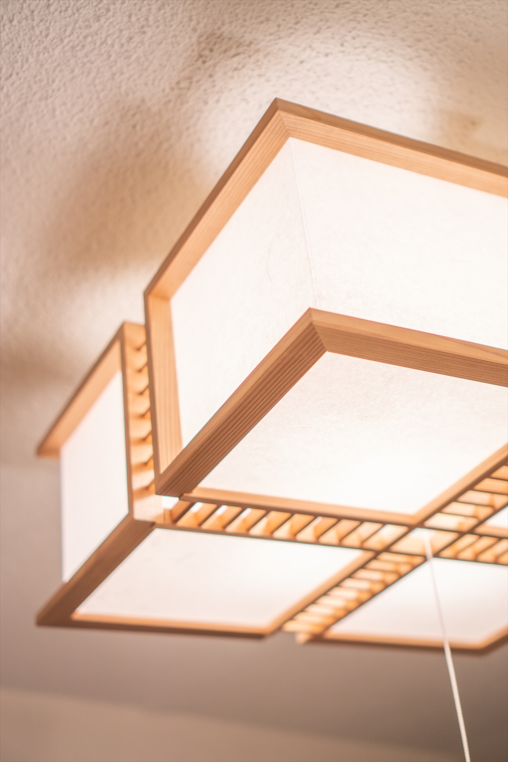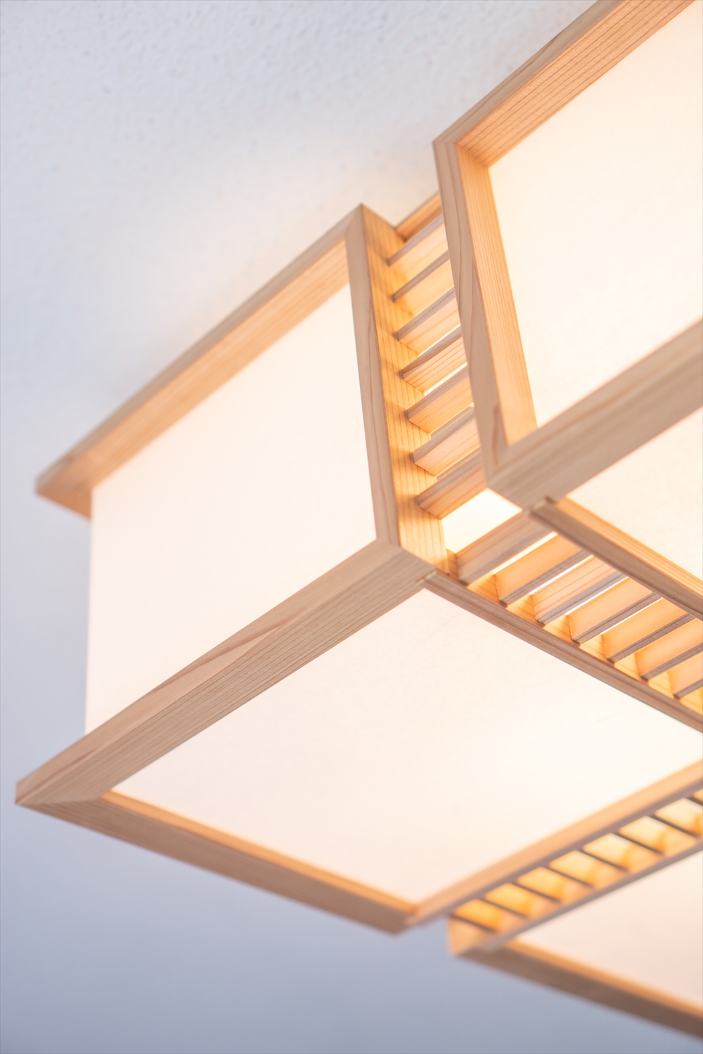 木組みの美しさとワーロンを通した柔らかな光が特徴。