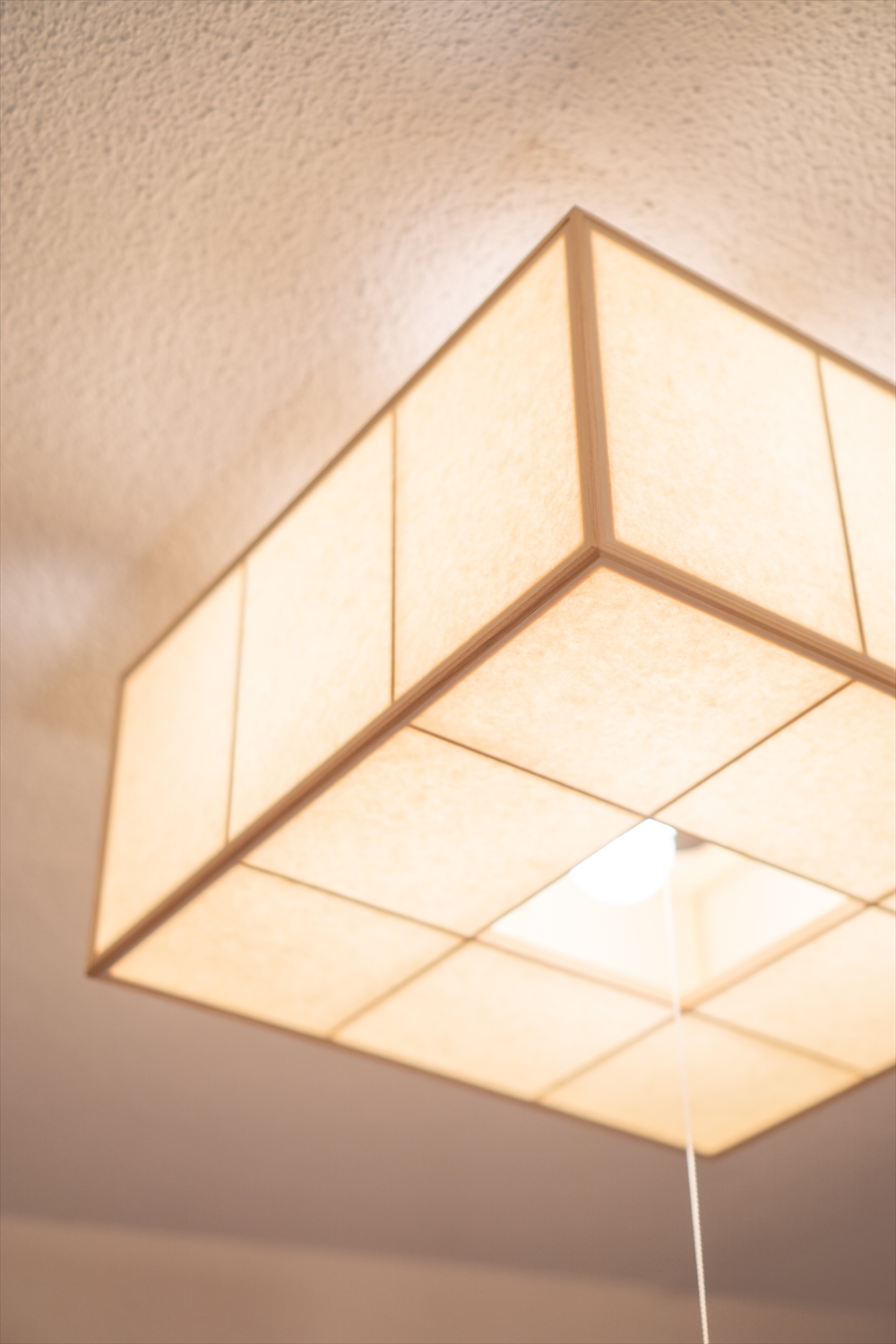 囲 (kakoi) ホーム商品照明ペンダント照明囲 (kakoi) 囲(kakoi) 生なりのワーロン越した木組みの シルエットが透ける温かな光。 直付けとして使えるようコードを短くしています。 備考:シェードは自然の材を使って手作りされたものです。 その為、色・木目が写真と異なる場合がございます。 品番 AC921 素材 国産檜/ワーロン(生成り)/合板(天板) サイズ Φ400mm 高190mm コード長50(全長240) 質量1.1kg 仕様 E26 白熱電球付(60W×4+ナツメ球) 黒丸打コード(引掛シーリング) プルスイッチ(4-2-ナツメ-OFF) kakoi ¥41,800(税込) 数量