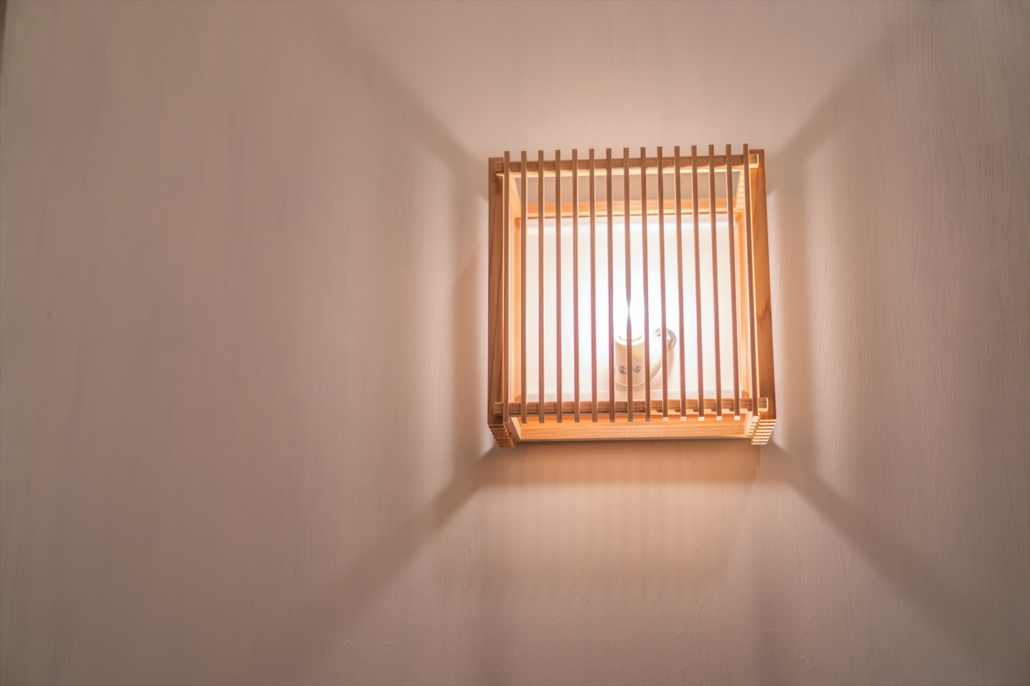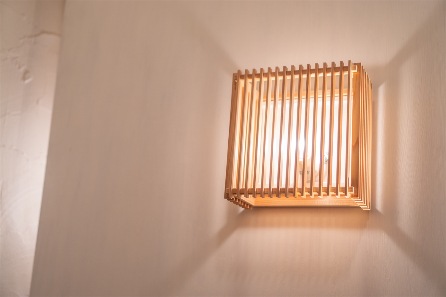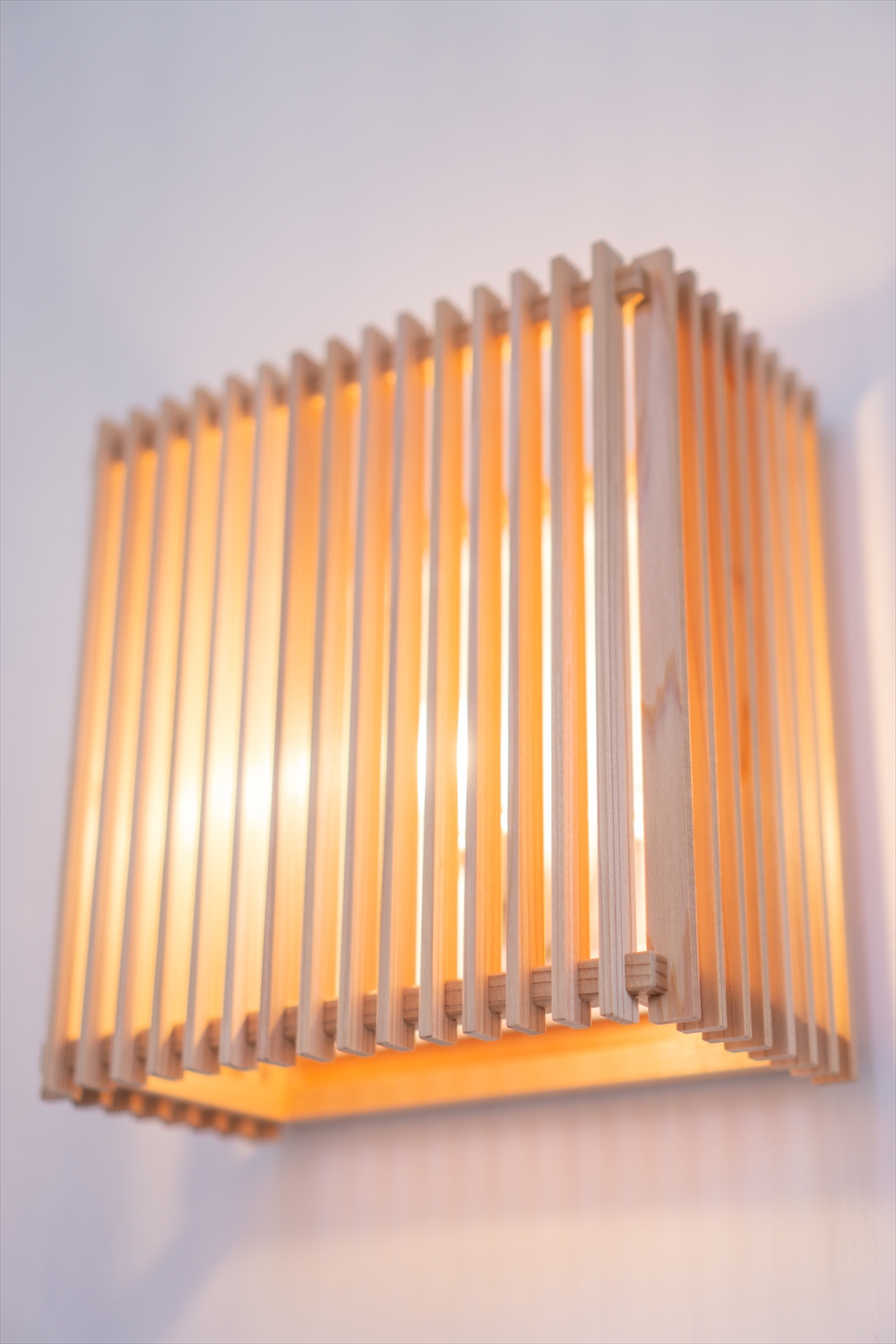 簾(ren) ホーム商品照明ペンダント照明簾(ren) 簾(ren) ワーロンを張らずに仕上げたブラケット。 縦格子の隙間から光が明るく広がります。 備考:シェードは自然の材を使って手作りされたものです。 その為、色・木目が写真と異なる場合がございます。 品番 AB619 素材 国産杉/民芸塗仕上/鉄博塗装(裏板) サイズ 巾215mm 高215mm 奥行125㎜ 仕様 E17 40W 白熱電球付 直付(要配線工事) 簾(ren) ¥22,000(税込) 数量