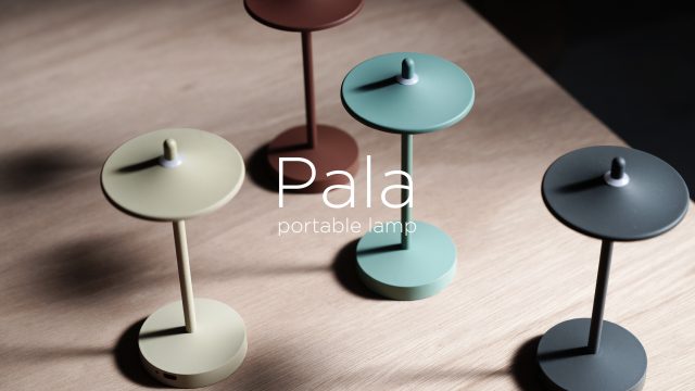 傘をイメージした、コンパクトで持ち運びやすいポータブルランプ。カラフルな4色展開で、