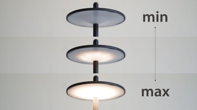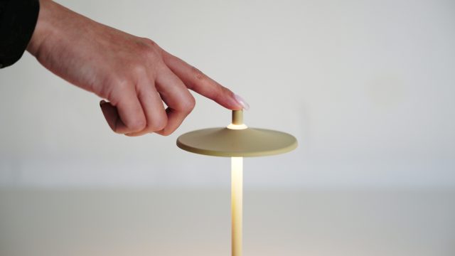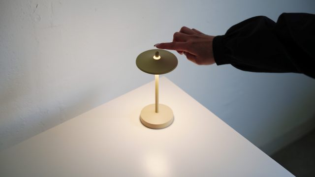 上部のでっぱりに触れるだけで簡単にON/OFF、長押しでお好みの明るさに調整可能。