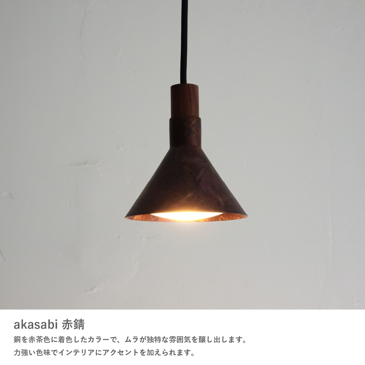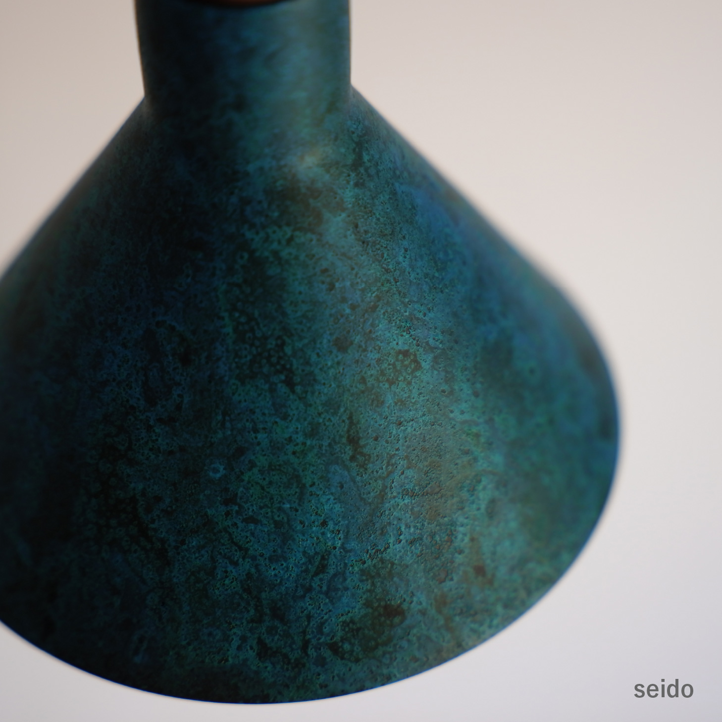 銅や真鍮の美しさを引き出したカラーリング。点灯時には内側と外側で異なる表情を楽しめます。