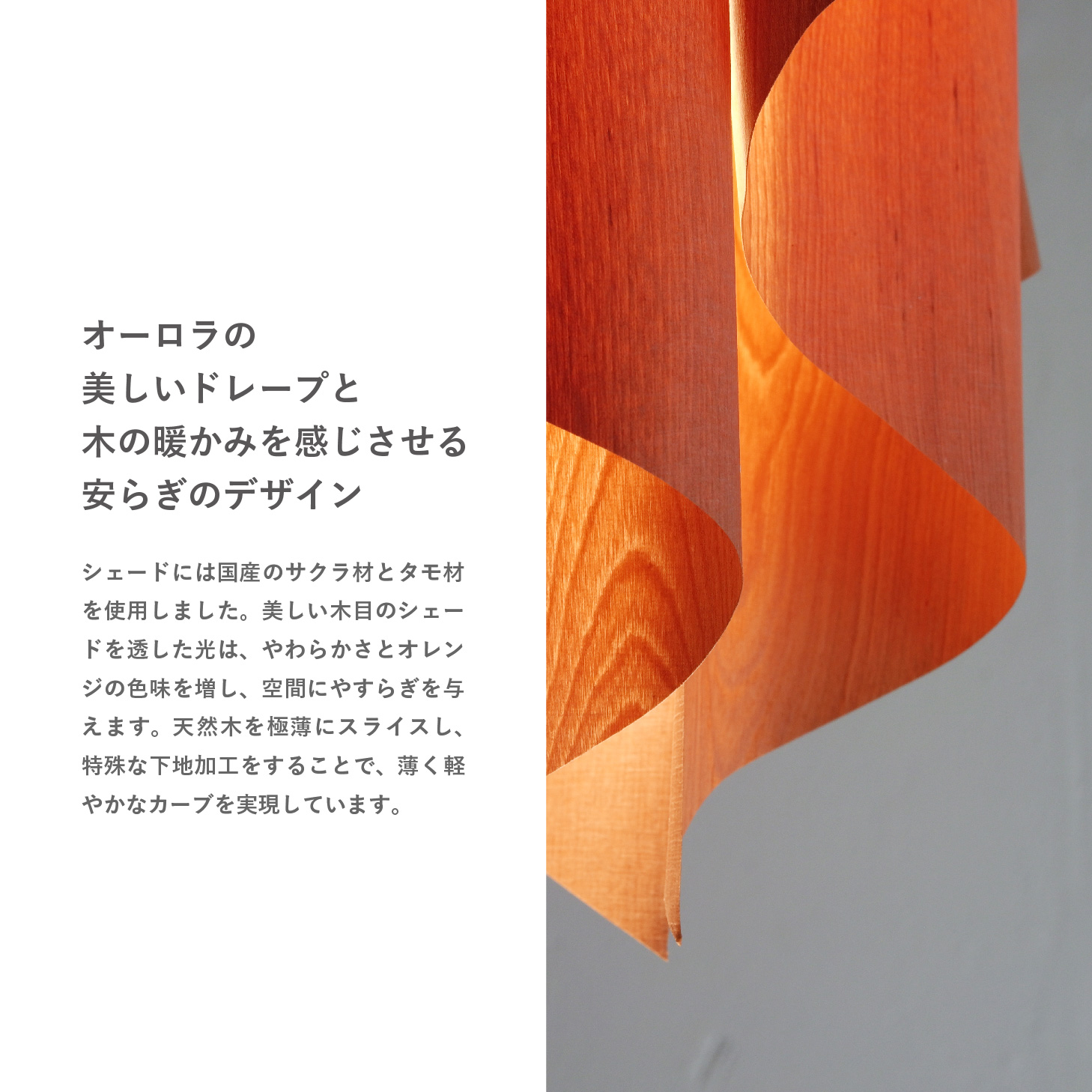 美しい木目を透した光は、やわらかくオレンジがかった温かみのある光となり、