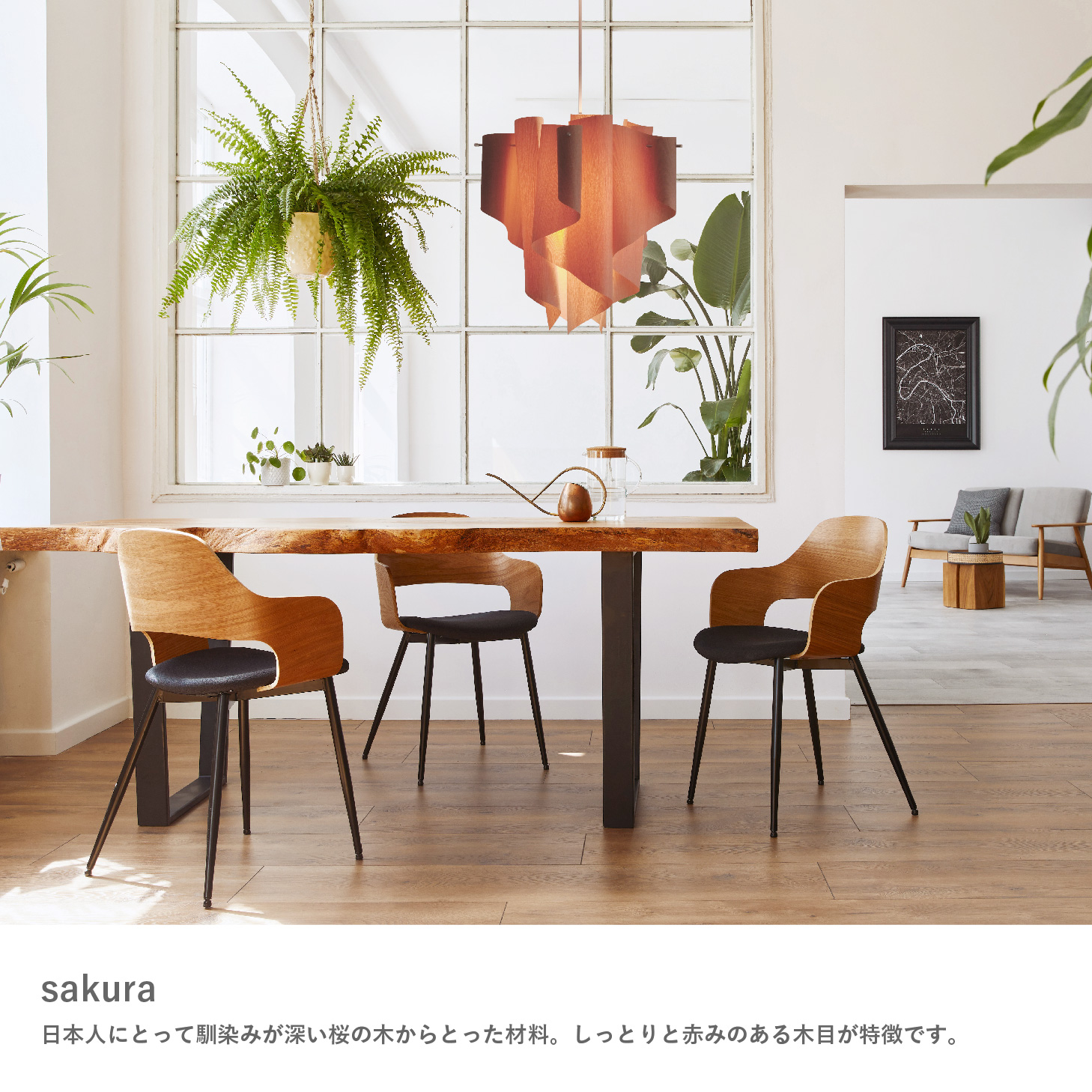 日本人に馴染み深い桜の木材を使用。しっとりとした赤みのある木目が特徴です。