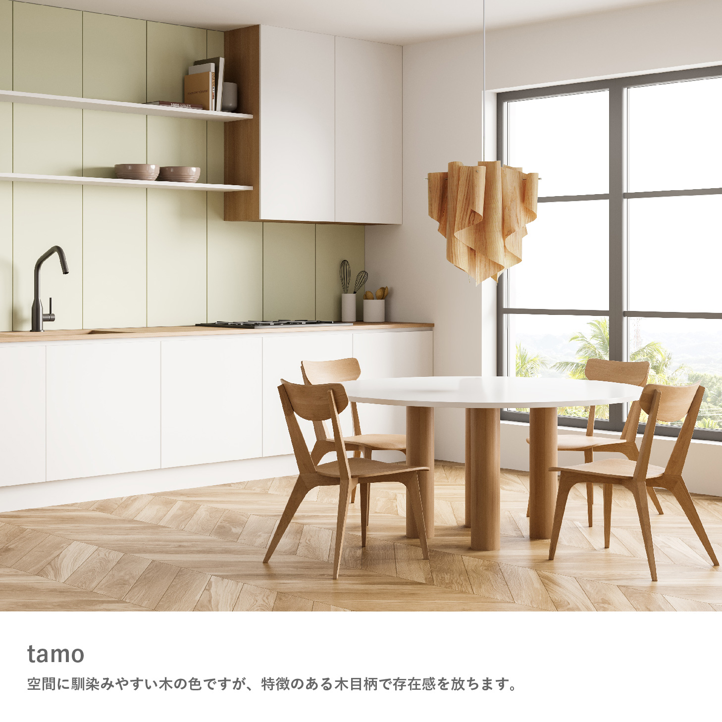 空間にやすらぎを与えます。天然木を極薄にスライスし、