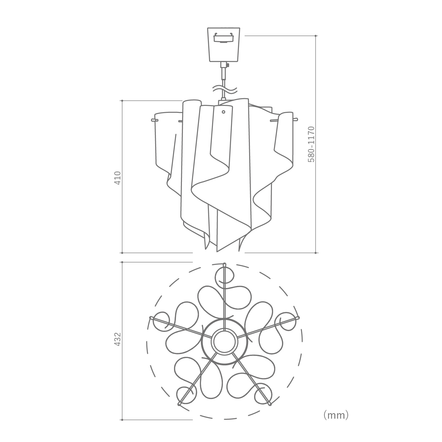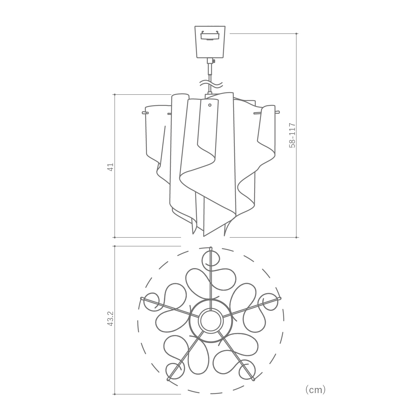 | サイズ | W43.2×D43.2×H41.0(cm) 天井からシェード下までの寸法(全高): 最短58~最長117(cm) ※高さ調節可能 |