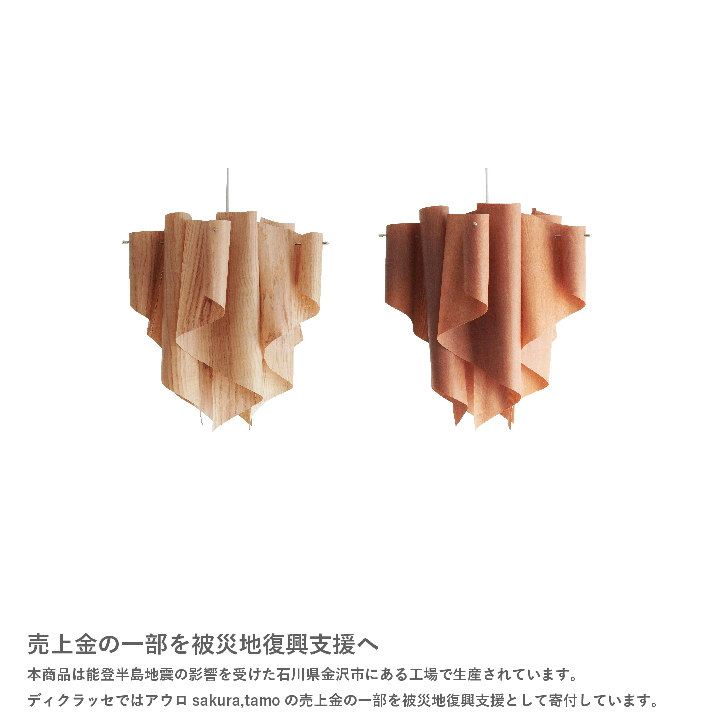 シェードには国産のサクラ材とタモ材を使用。