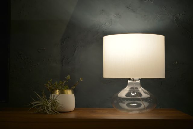 水面のような透明感と艶を持つ、美しいガラスベースのテーブルランプ