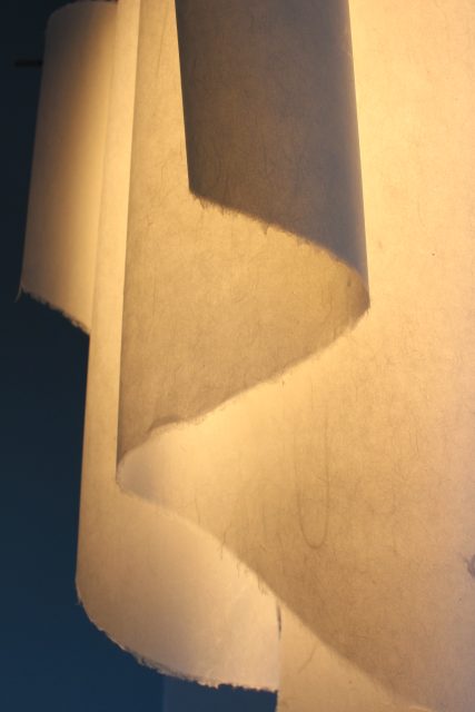 和紙はシェードの形にカットしているのではなく、 一枚ずつ漉いて制作しているので、