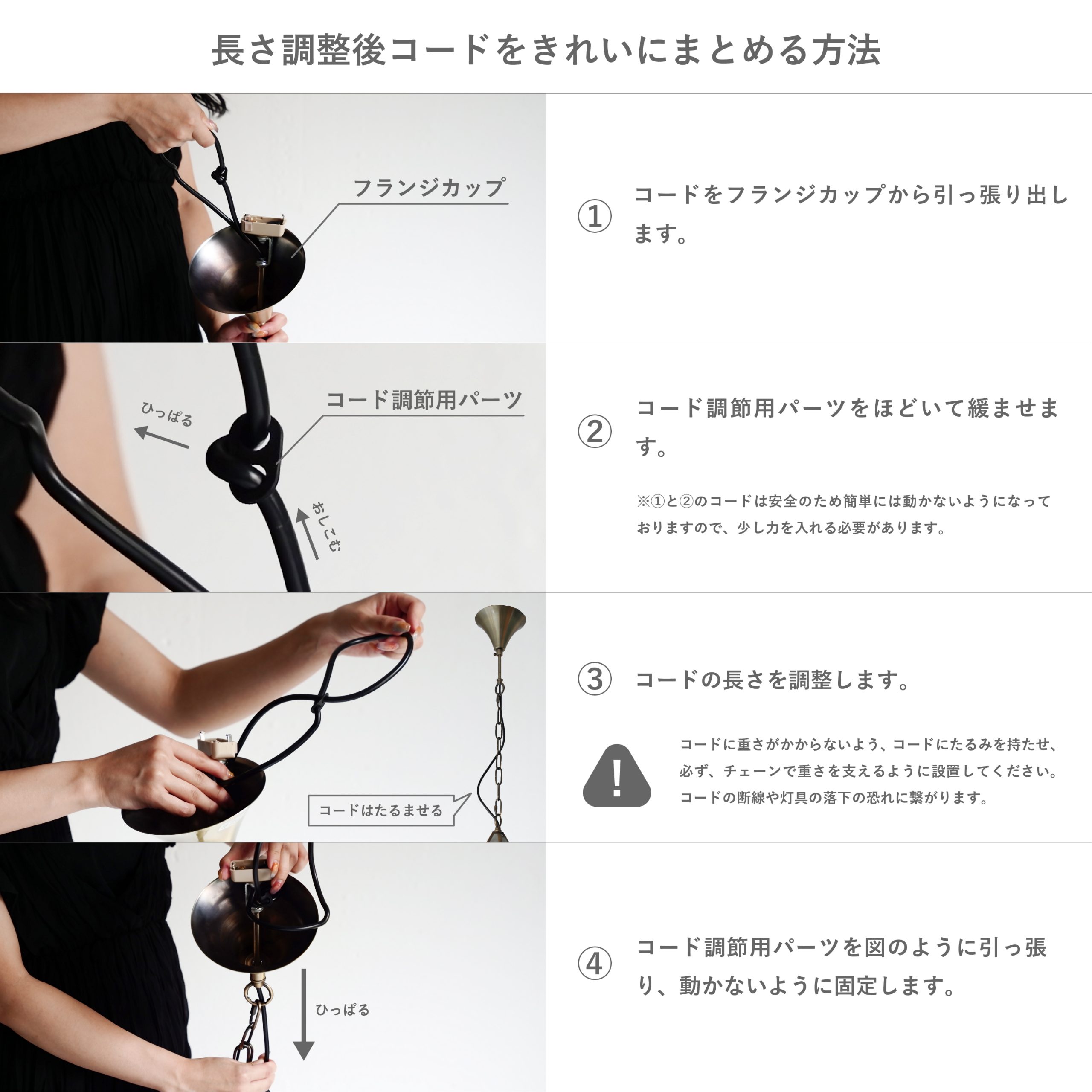| 仕様 | 付属電球:白熱電球 E-26 40W 普通球(クリアー) LED電球 E-26 7W 810ルーメン(白熱60W相当) 2700ケルビン 普通球(クリアー) 仕様 :引掛けシーリング チェーン吊り ご注意 :金属の本来の風合いを生かしたデザインのため、 色や仕上がりには若干の個体差がございます エイジングデザイン=時間の経過と共に、 金属の色や風合いが少しずつ変化します 付属のLED電球は調光対応不可です |