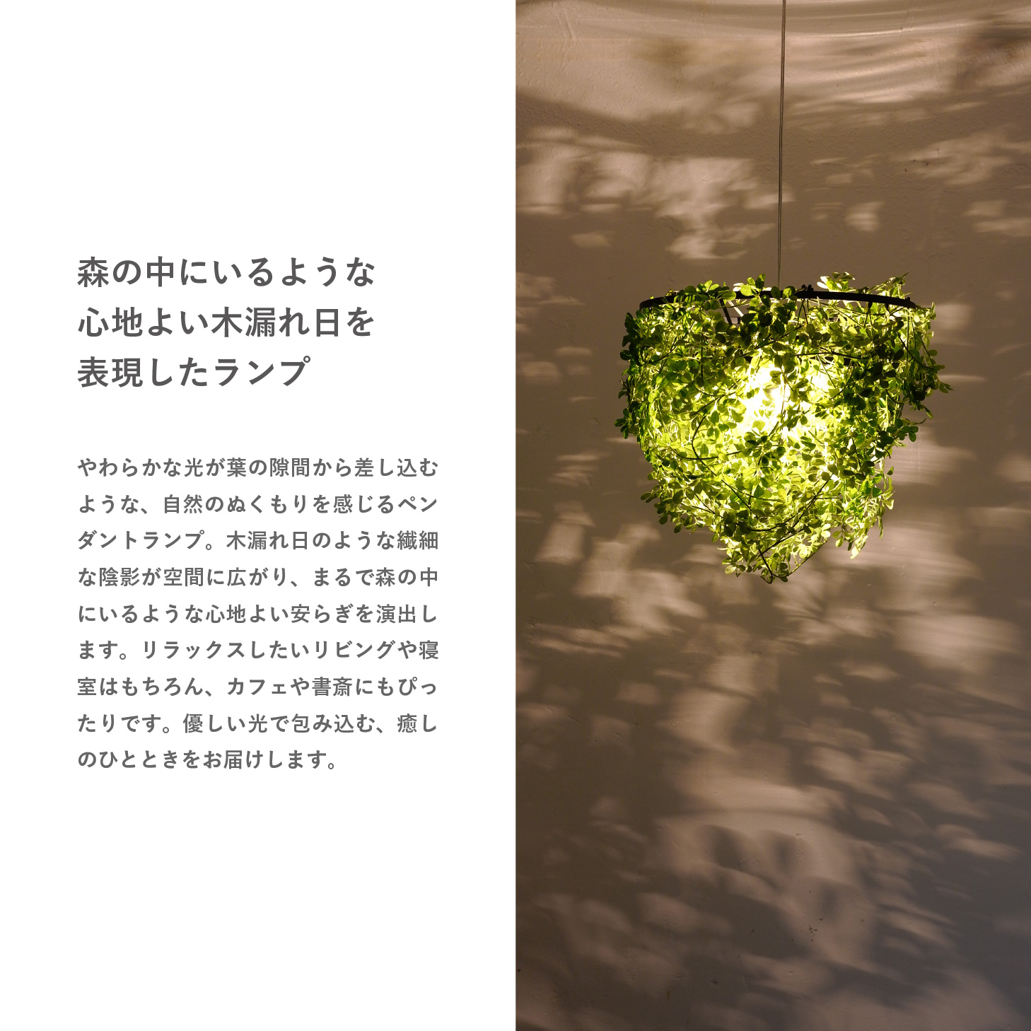 やわらかな光が葉の隙間から差し込むような、自然のぬくもりを感じるペンダントランプ。