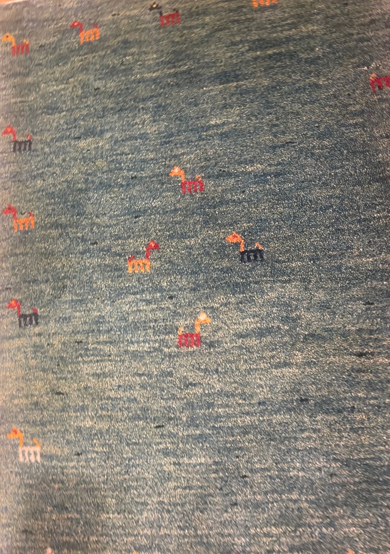 草原に羊文様 自分たちの遊牧風景を織り込んだギャッベ。経糸の処理もキチッとされ色糸でステッチも施されおり 遊び毛も出にくく丁寧に仕上げをされたギャッベです。玄関マットサイズのギャッベはテーブルの下 足元 ベッドサイドなど幅広く使える1枚です