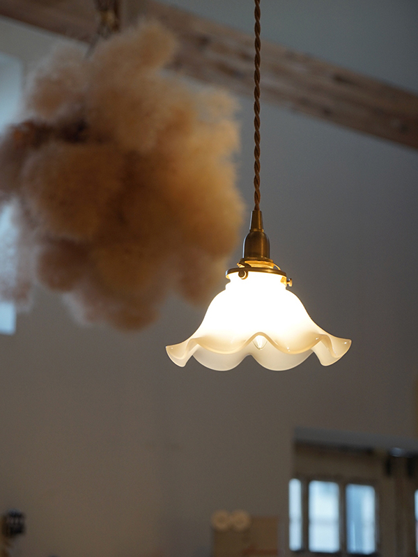 懐かしい乳白色のミルクガラスはほどよく空間全体に明かりが広がり、