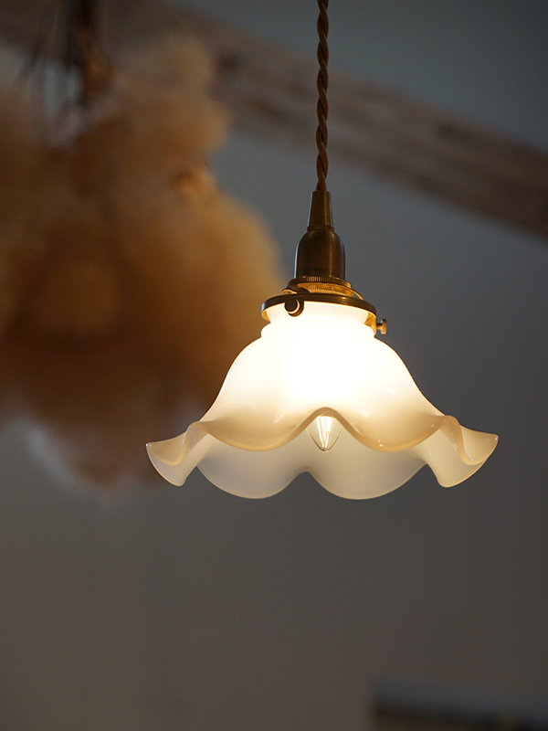 | 仕様 | 名前の通り、貝殻モチーフのやわらかなシルエットが特徴のシェードです。 懐かしい乳白色のミルクガラスはほどよく空間全体に明かりが広がり、 アンティークな雰囲気たっぷり。 シェードが電球を覆わないので電球の光が直接目に入りやすく、 吊るす高さや場所を工夫して眩しく感じない位置に調整をして下さい。 玄関やお手洗いなど限られた範囲を照らせばよい場合は1灯で、廊下やキッチンカウンターなど長さがある空間の場合は2~3灯を設置するのがおすすめです。 天井の高さやお部屋とのバランスを見ながら設置して下さい。 ※こちらはシェードのみの商品です。 照明としてお使いいただくには、別途「灯具」と「電球」のご購入が必要となります。 アクシスのシェードはアクシスの灯具とセットでのご利用を想定しておりますので、以下のリンクや関連商品のリンクを参考にしていただき、灯具と電球をご購入ください。 |