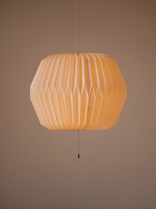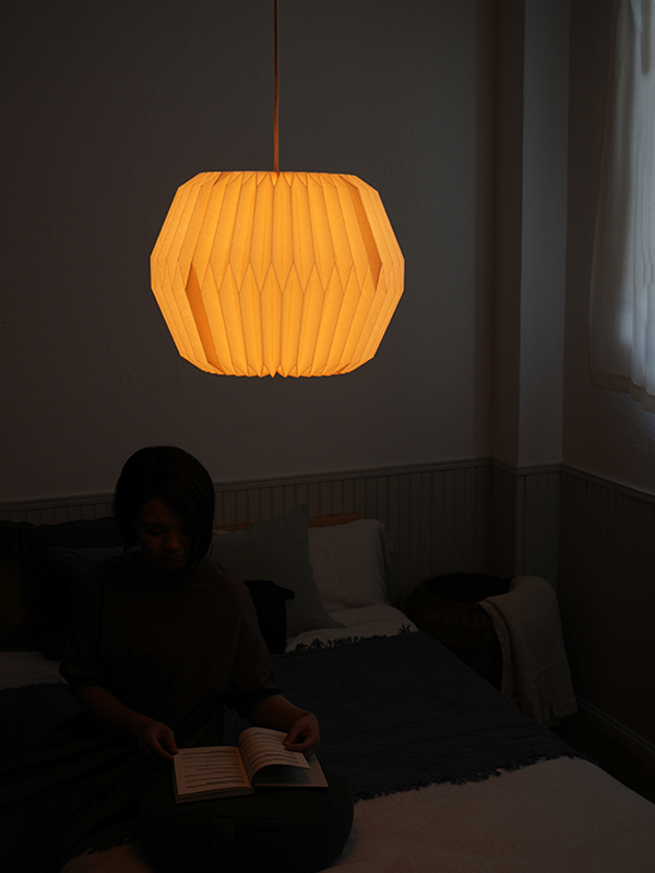 ひとつひとつ手で折りあげられた、美しいフォルムは、柔らかな光と影のコントラストと落ち着いた雰囲気と安らぎを与えてくれます。