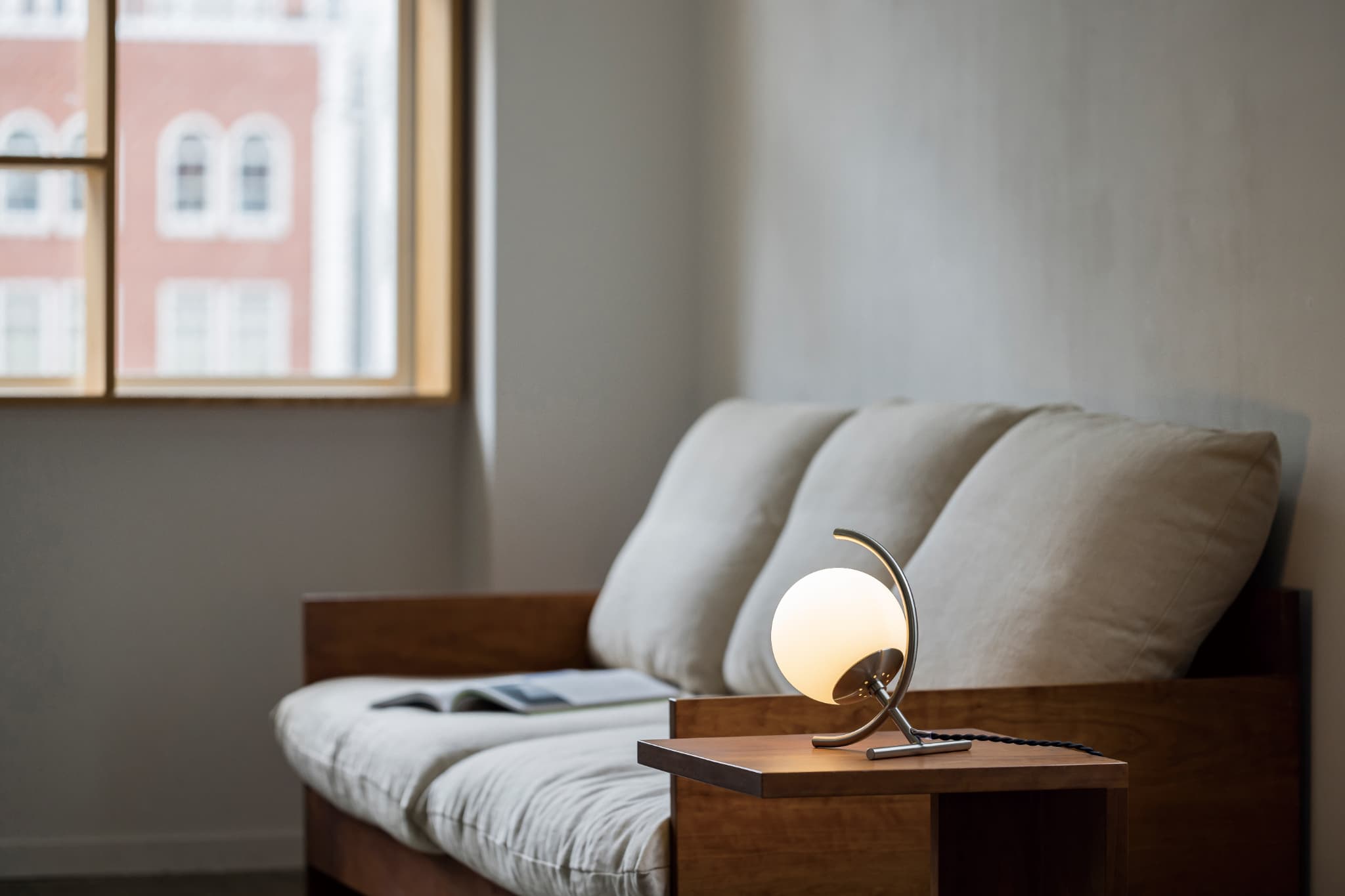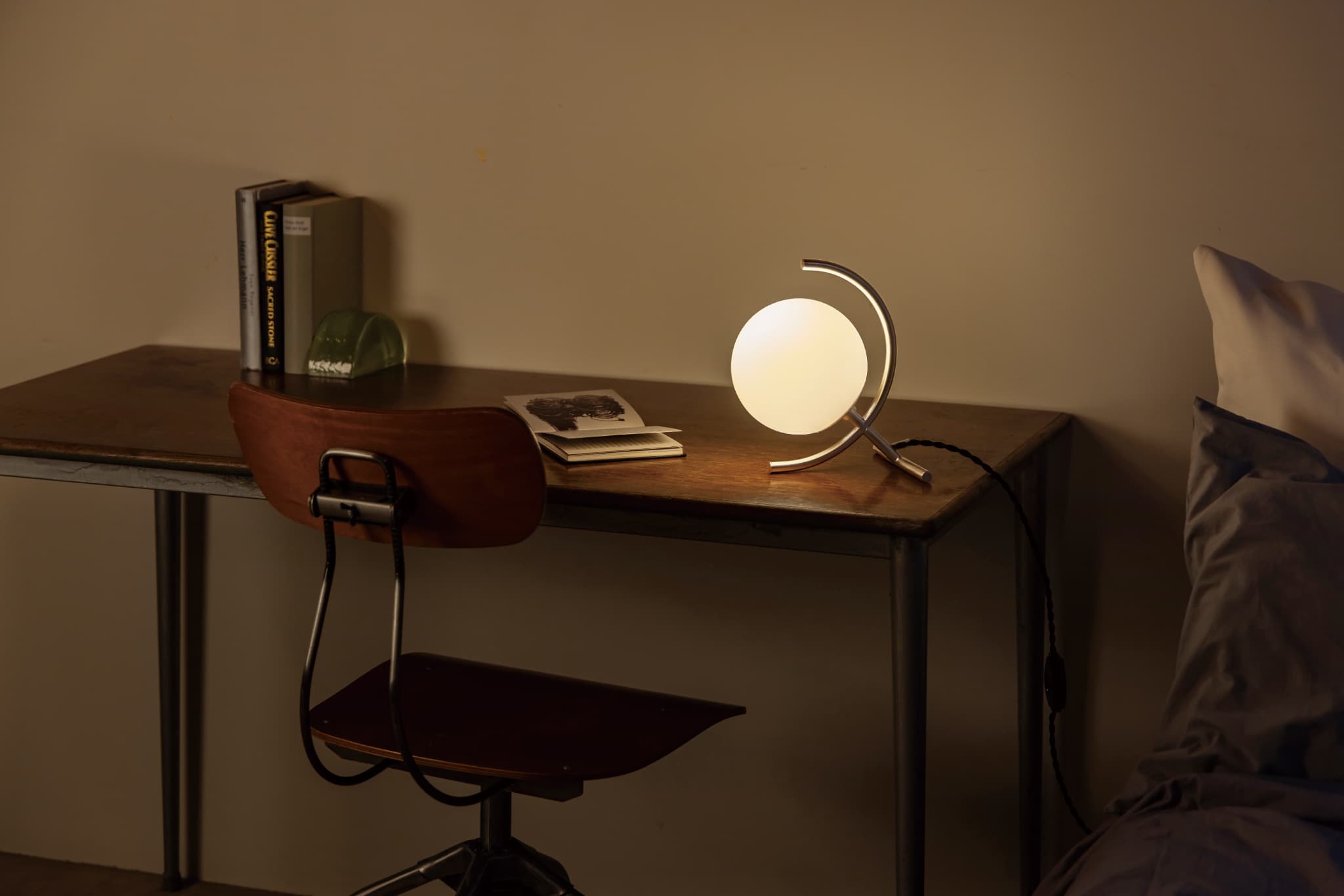 地球儀をイメージしたシンボリックなルックスでレトロフューチャーなシーンを。