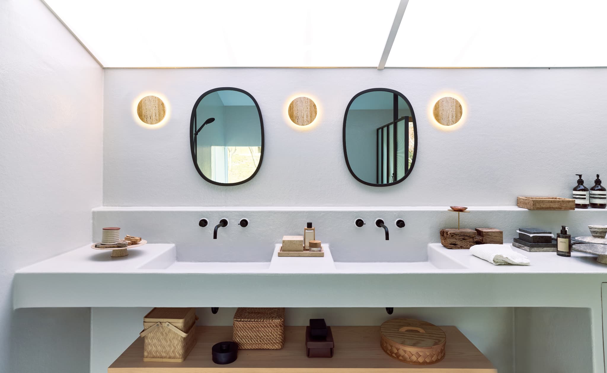 柔らかで上品な雰囲気をもつ天然石を贅沢に使用し、本体の裏側から壁面を優しく灯すウォールライト「Noir LED-wall light」温泉や地下の湧水より長い年月を経て